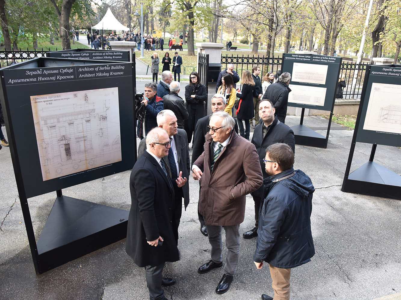 Архив Србије је, поводом откривања споменика руском архитекти Николају Краснову у Београду, приредио изложбу на отвореном „Зграда Архива Србије – aрхитекта Николај Краснов“. Изложба је постављена у дворишту зграде Архива Србије, коју је наменски пројектовао Николај Краснов, а преко пута Малог Ташмајдана, где је 9. децембра откривен споменик руском архитекти. Споменик подиже Град Београд поводом 80 година од смрти Николаја Краснова који је својим стваралаштвом оставио значајан печат у архитектури Београда. Након откривања споменика изложбу Архива Србије посетили су заменик градоначелника Београда Горан Весић, помоћник градоначелника Београда Андреја Младеновић, градски секретар за културу Београда Иван Карл и председник општине Врачар др Милан Недељковић. Госте је кроз изложбу провео директор Архива Србије др Мирослав Перишић. Међу бројним делима којима је Краснов дао изузетан допринос изгледу престонице налази се и зграда Архива Србије, на којој је 2011. године постављена спомен-плоча, којом је Архив Србије одао почаст великом архитекти. На изложби су представљени планови зграде Архива Србије, коју је Николај Краснов пројектовао у периоду између 1925. и 1928. године. Аутори изложбене поставке су Ана Кос Вујовић и Оливера Антонић. Посетиоци ће имати прилику да погледају изложбу сваког радног дана од 8 до 19 часова и суботом од 8 до 13 часова.