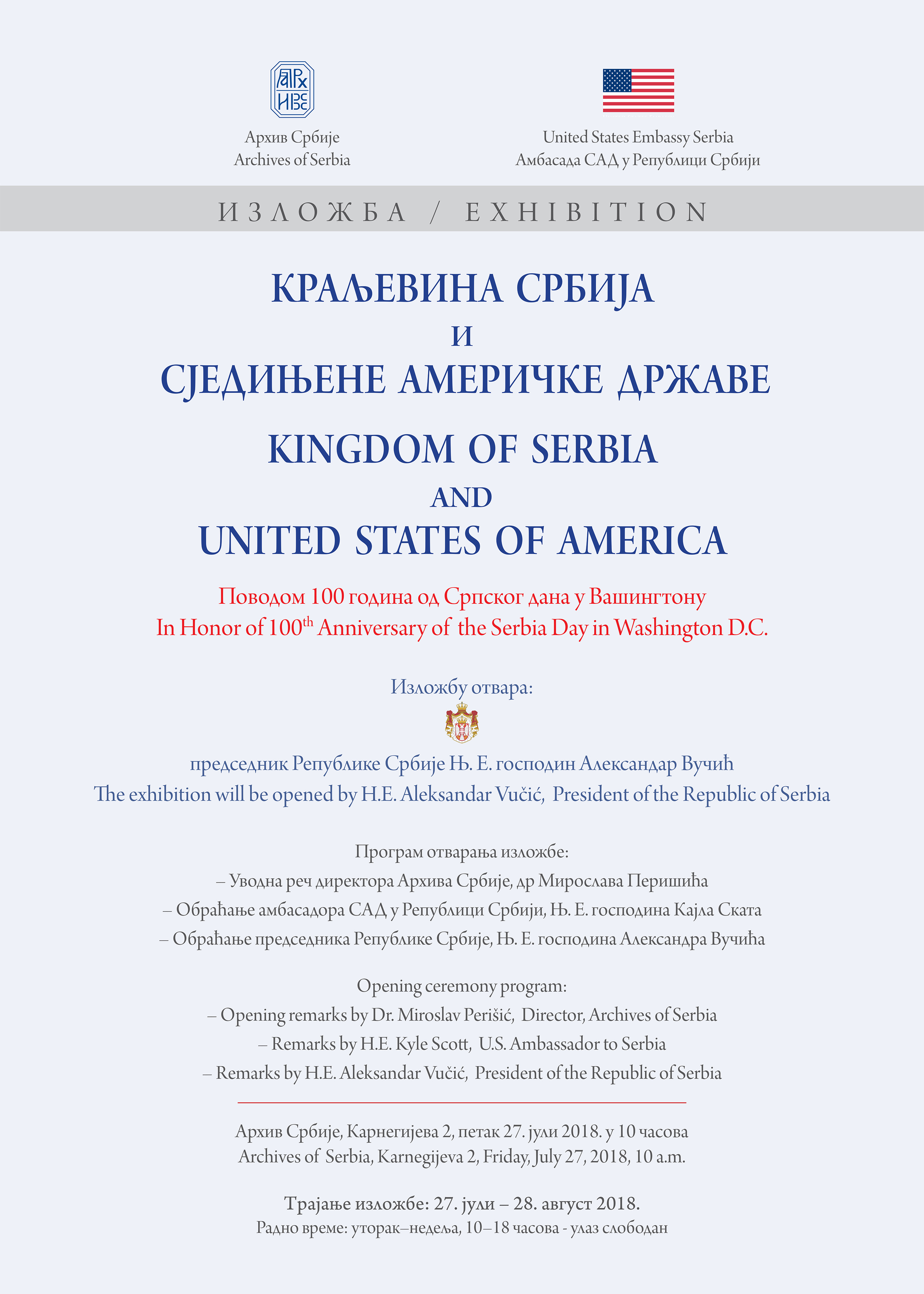 Трајање изложбе Архива Србије „Краљевина Србија и Сједињене Америчке Државе“ продужено је до 31. октобра 2018. године.