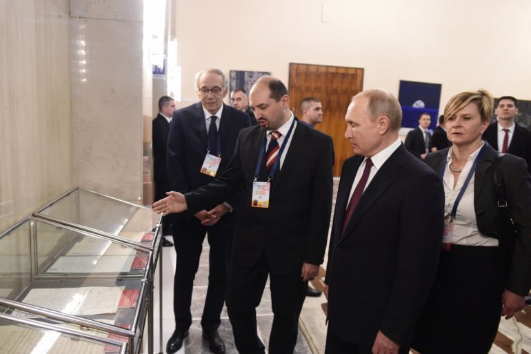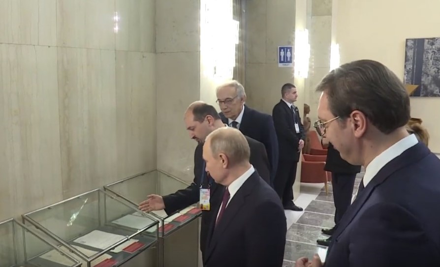 Изложба „Српско-руске везе 1804-1918. у документима Архива Србије“ приређена је у Палати Србија поводом посете председника Руске Федерације Владимира Владомировича Путина.